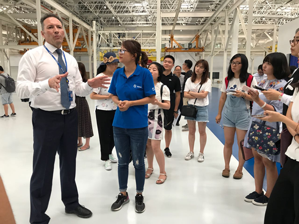 四川国际航空发动机保税维修公司、保税维修基地项目经理菲利普在给参加活动的媒体讲解。