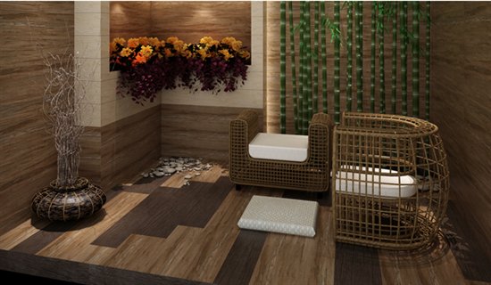 悉达屋木纹陶瓷是协进品牌最具代表性的产品,其设计灵感来源于简单、朴实而又自然的生活细节之处。自然清晰的木材纹路,独特的原始生态气息,给人一种来自森林的原始味道,让人们在忙碌的生活中也能寻求到一片心灵的栖息地。木是最能通往心灵通道的路径,用设计,以木、石、绿色植被等渲染空间,用瓷木缅甸柚木铺贴地面,感受来自大自然的简单舒心。其纵横交融的圈状纹理,雅致朴实的木色调,质朴明净,诠释着一切美好。闭上眼坐在这里,能够时刻感受到大自然温润的芬芳气息。协进陶瓷的精工细作让悉达屋仿古砖无惧品质的考验。悉达屋木纹砖与一般木纹砖不同,增添了防滑的功能。市面上价格低廉的木纹砖产品,表面非常光滑,而悉达屋木纹砖,采用模具制造,表面纹路如同天然木材般凹凸变化,从而增加地面与人体脚底或鞋底的摩擦力,达到防止打滑摔倒的效果。悉达屋木纹砖经过高温烧制,不会因为地热供暖而发生起翘、变形等问题,更不会释放甲醛等有害气体。是北方城市最为安全的装修材料之一。