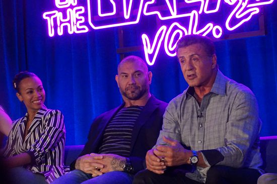 搜狐娱乐讯(图/文 小麦)搜狐娱乐有幸出席了《银河护卫队2》(Guardians of the Galaxy)20日在洛杉矶记者会。导演詹姆斯-古恩(James Gunn)首次公开宣布了这部中将出现的几个新角色,其中包括华人女星杨紫琼和西尔维斯特-史泰龙(Sylvester Stallone)出演的其实都是上一代银河护卫队成员(The Original Guardians)。